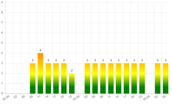 Четырехбалльные геоудары ожидаются в 11:00, показатель спадет ближе к 14:00.