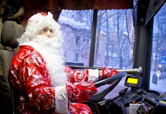 Практика переодевания водителей городского транспорта в Дедов Морозов наблюдается во многих странах мира. В частности, в России она практикуется уже на протяжении нескольких лет.