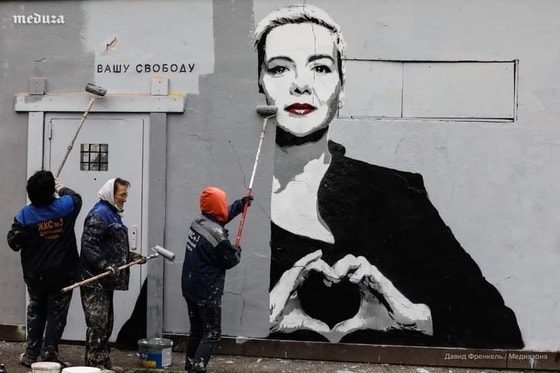 Автор работы неизвестен, но рисунок похож на стрит-арт с Алексеем Навальным, который был в центре Петербурга.