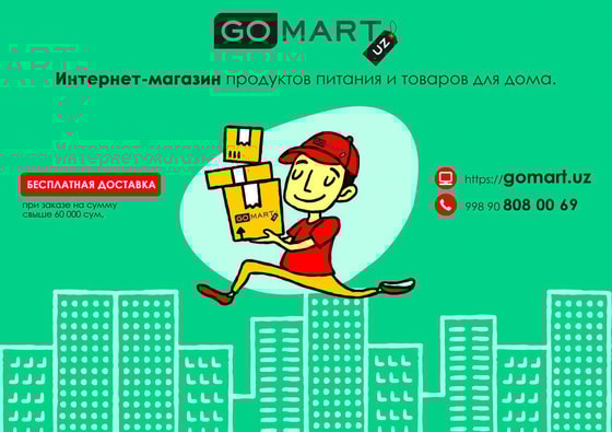 — для заказа, достаточно выйти в интернет и зайти на gomart.uz или позвонить по телефону +99890 8080069;