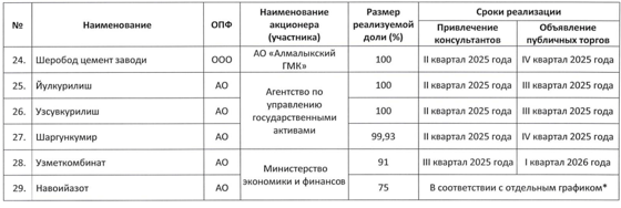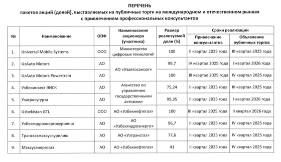 Президент Шавкат Мирзиёев подписал постановление, согласно которому 29 государственных предприятий будут выставлены на публичные торги с привлечением международных консультантов.