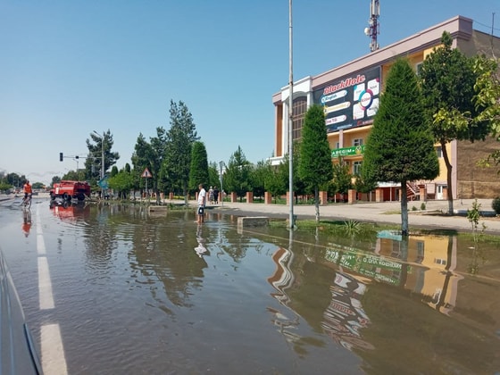 В махалле Наманганской области затопило улицу, сообщает пресс-служба МЧС.
