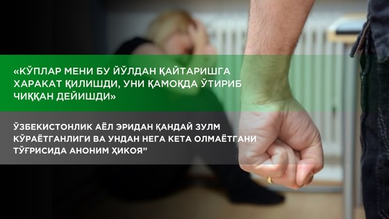 Таҳририят - Ўзбекистонлик айрим аёллар тез-тез оилавий зўравонлик қурбони бўлишади. Кўп ҳолатларда улар қўшнилар гап сўзи, ёлғизликда яшай олмасликларидан қўрқиб ҳамда фарзандларини ўйлаб бу ҳолатлар хақида арз қилишмайди. Улар ажрашган аёллар қисмати оғир кечиши ва ёлғиз оналарнинг ижтимоий муҳофазаси сустлиги сабаб зўравонликларга чидаб яшашга мажбур бўлишмоқда.